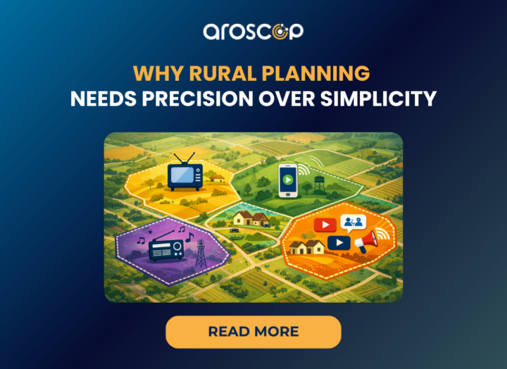With hundreds of thousands of geo-coded rural polygons enriched with 220+ socio-economic, infrastructure, and digital attributes, Aroscop enables planners to detect exactly these micro-variations instead of defaulting to district averages. Rather than assuming TV-first, planners can identify where digital deserves heavier weighting, where reinforcement is needed, and where frequency caps must differ by cluster.